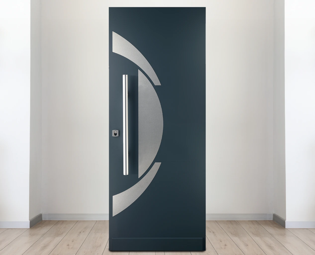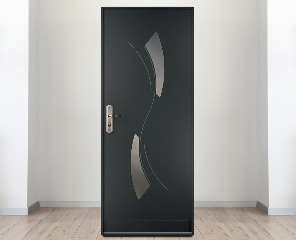 Finition vantail : lisse peint ou plastifié ton bois, motifs emboutis ou décors inox