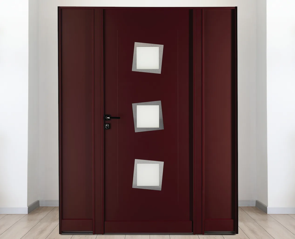 Finition vantail : lisse peint ou plastifié ton bois, motifs emboutis ou décors inox